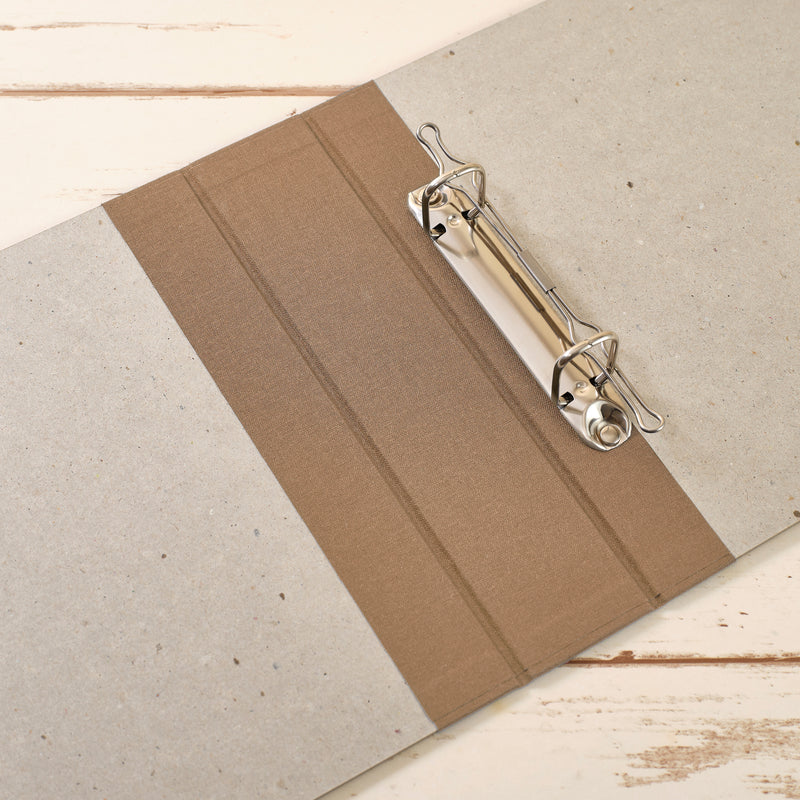 ohne Inhalt | frz. Buchbinderpappe mit Leinenstoff halbbezogen | 33 x 23 x 5 cm (BxHxT) | A4 Querformat | Füllhöhe: 25 mm | Füllmenge: ca. 100 Blatt (160 g Naturpapier) oder 130 Blatt (100 g Papier) | 2er Lochung | Buchecken |  Niederhalter aus Metall | ohne Kunststoff/Plastik