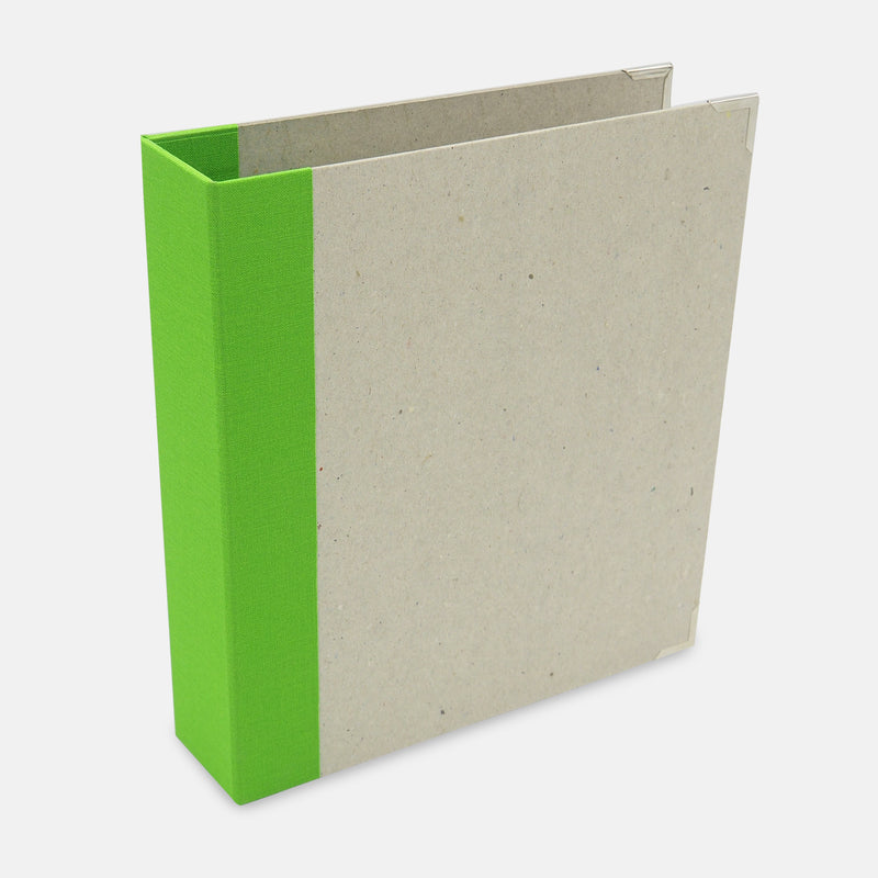 ohne Inhalt | frz. Buchbinderpappe mit Leinenstoff halbbezogen | 20,5 x 23 x 5 cm (BxHxT) | A5 | Füllhöhe: 25 mm | Füllmenge: ca. 50 Freundebögen | 2er Lochung | Buchecken | Niederhalter aus Metall | 11 Farben | ohne Kunststoff