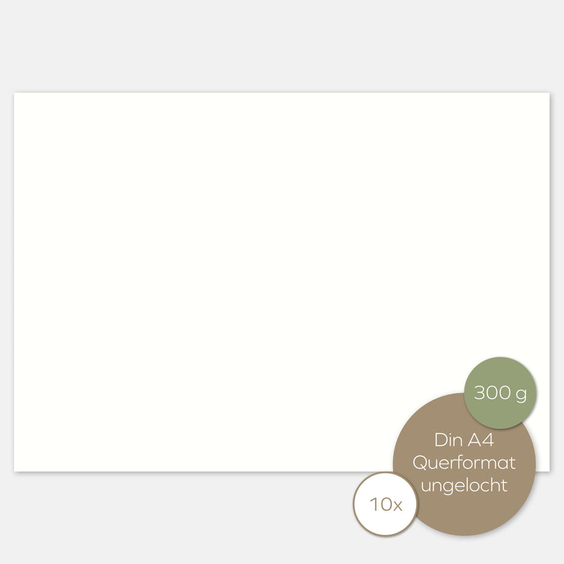 10 Bögen | 300g Naturpapier | unbedruckt | Din A4 | 21 x 29,7 cm | gelocht oder ungelocht