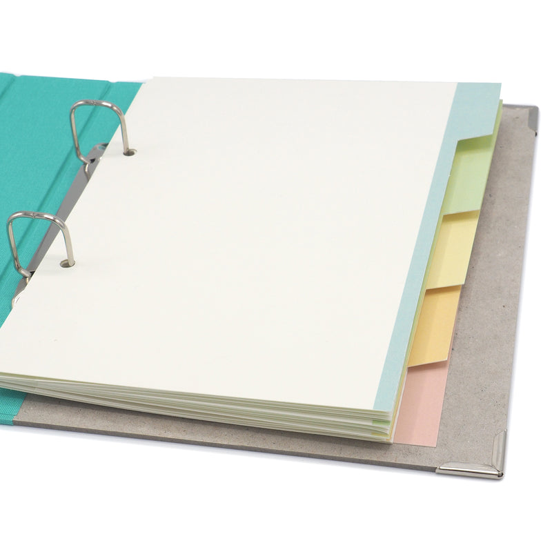 Für sanfte Ordnung im Ordner. Die Register zum selber schneiden. 5 aufeinander abgestimmte Farben in Pastelltönen. Die Schneidelinien sind markiert.