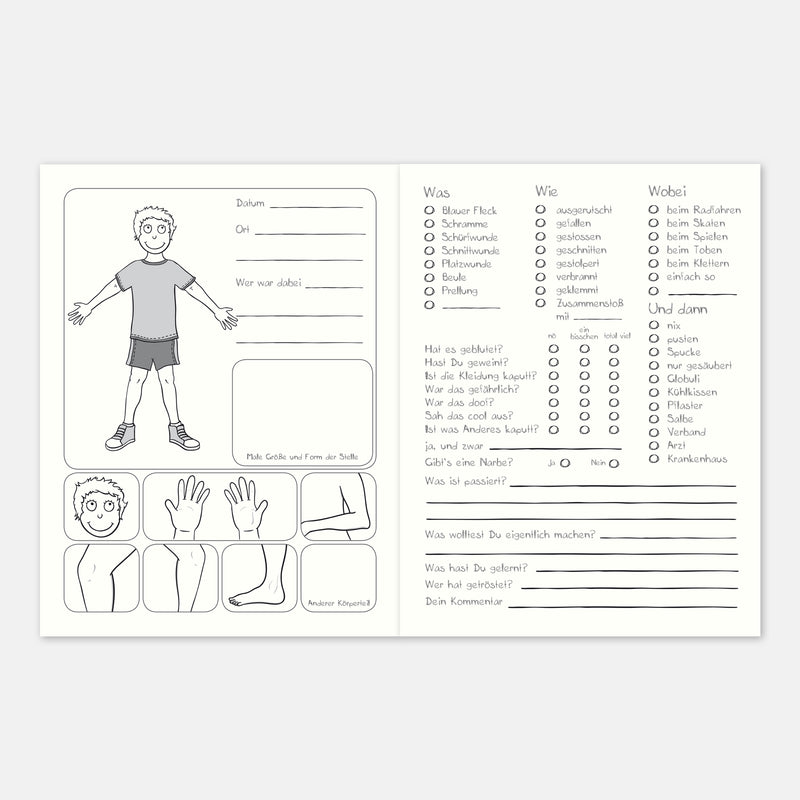 Softcover mit Folienkaschierung | 15 x 20 cm | Naturpapier | 28 Seiten | 13 Verletzungen