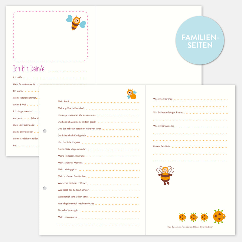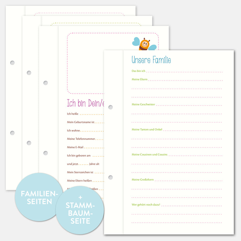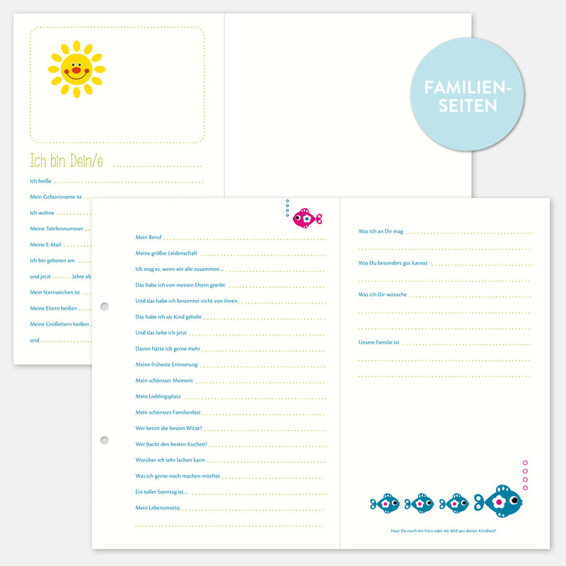 Ein eigenes Freundebuch für die Verwandtschaft mit generationsübergreifenden Fragen. Ein Spaß auf jeder Familienfeier. Geeignet für A5 Alben mit 2er Lochung.