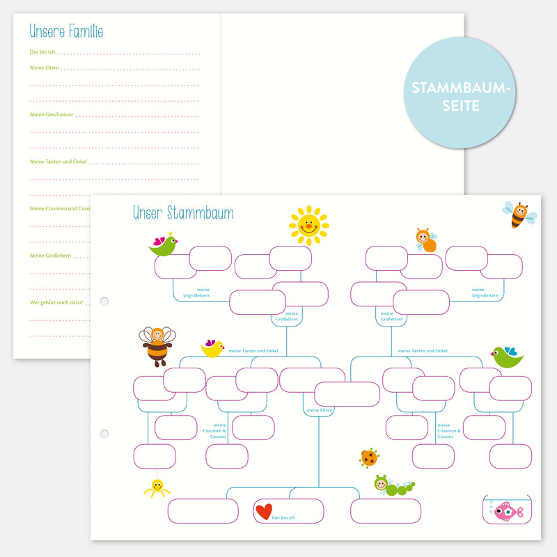 Freundebuchseiten Familie mit Stammbaum
