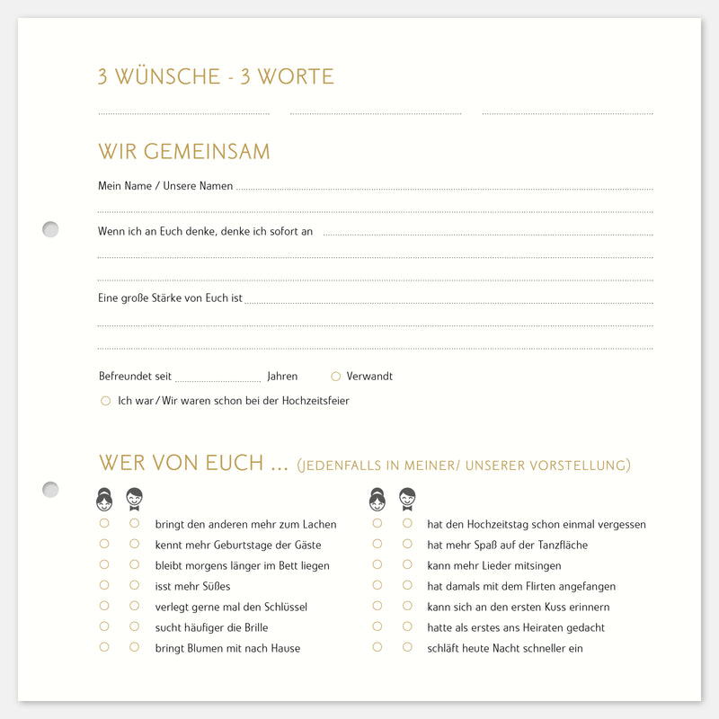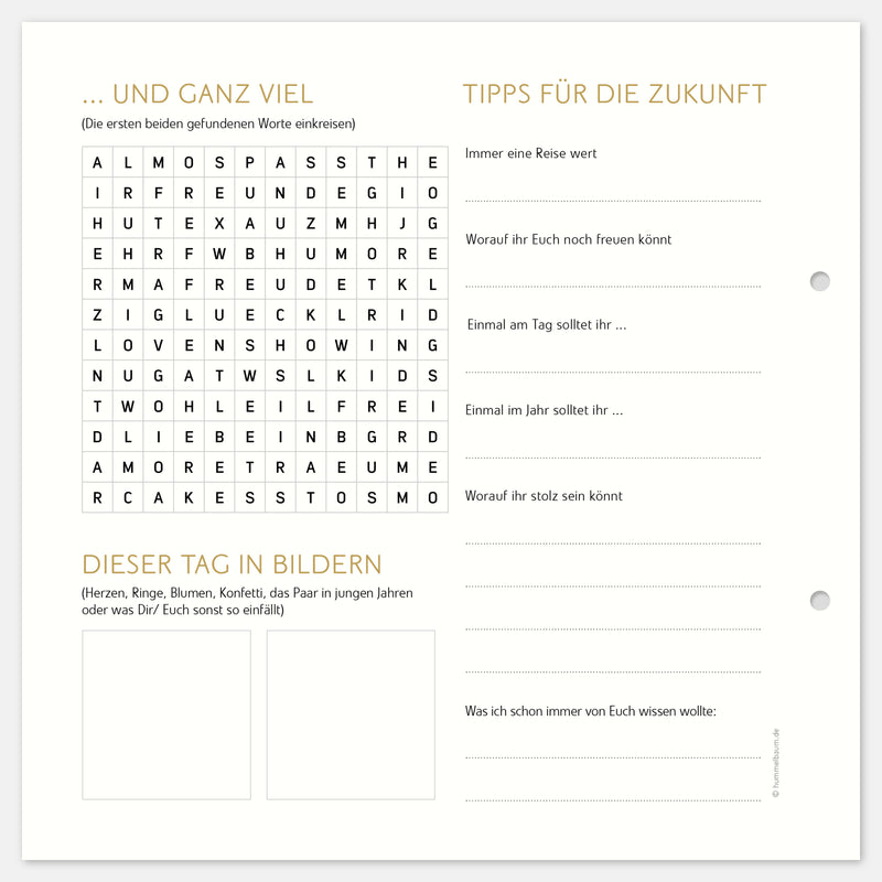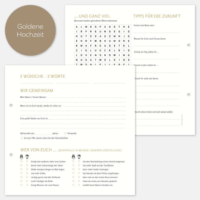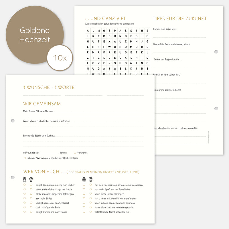 10 Extrabögen für das Goldene Hochzeits-Gästealbum mit Fragen.