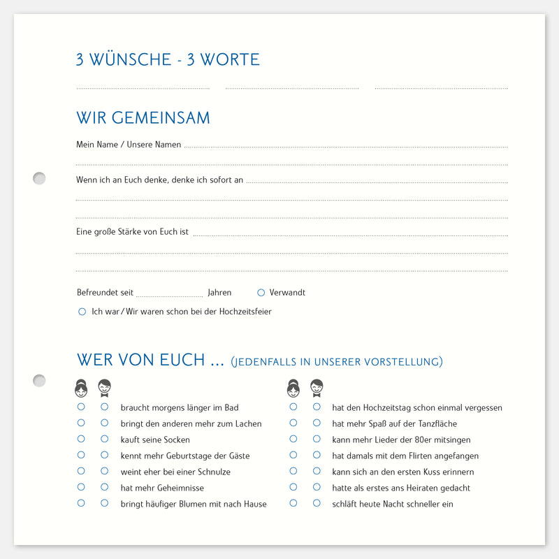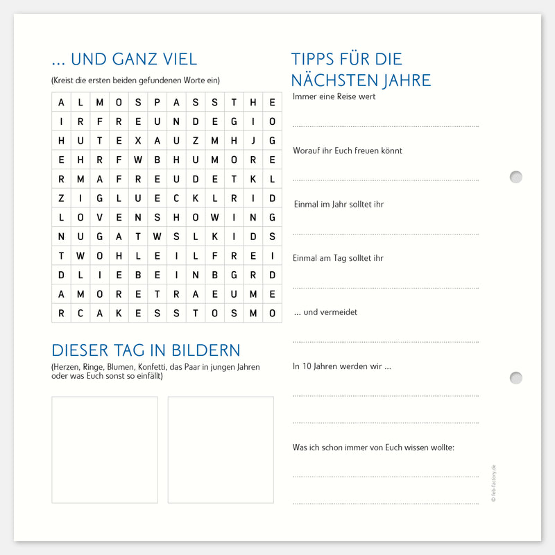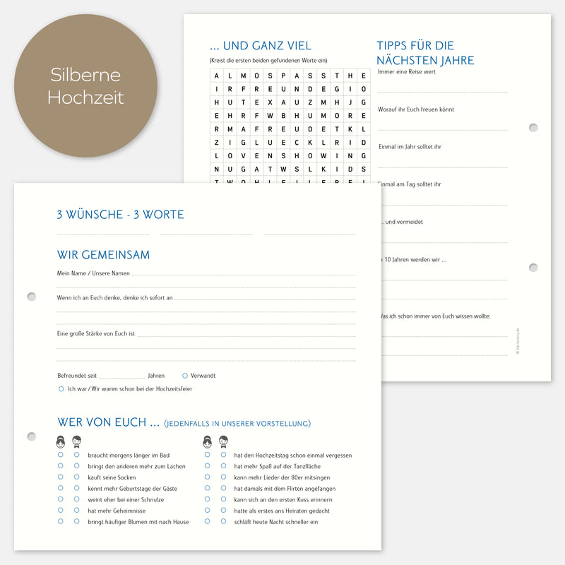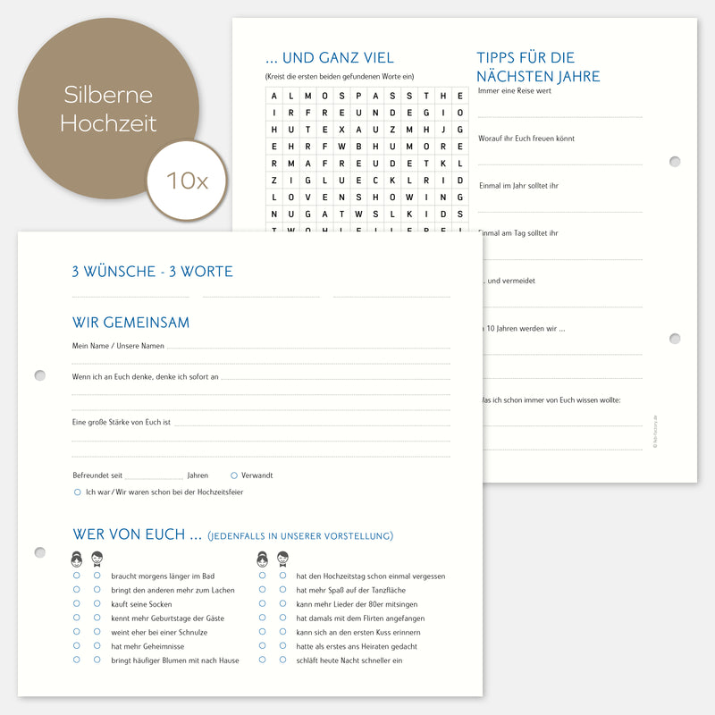 10 Extrabögen für das Silberhochzeits-Gästealbum mit Fragen.