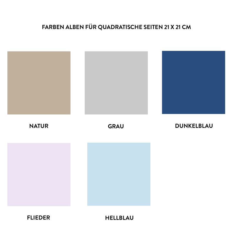 1 Album | 40 Gästebögen (für ca. 65 Gäste) | Begrüßungsseite | Ausfüllbogen 21 x 21 cm | max. 80 Bögen | 8 Albumfarben