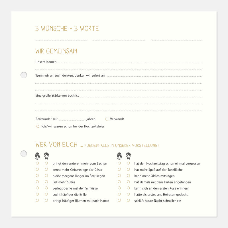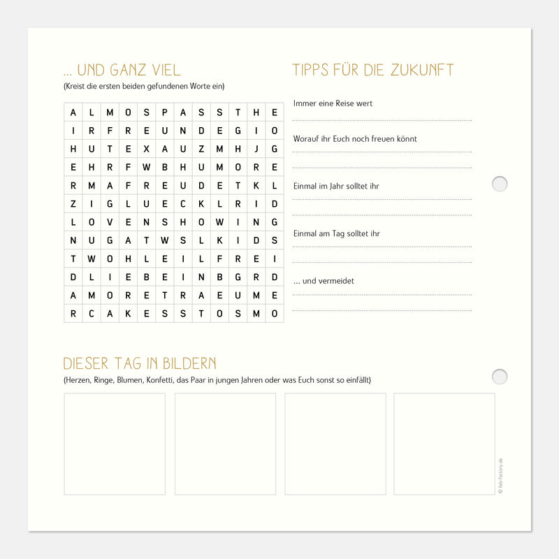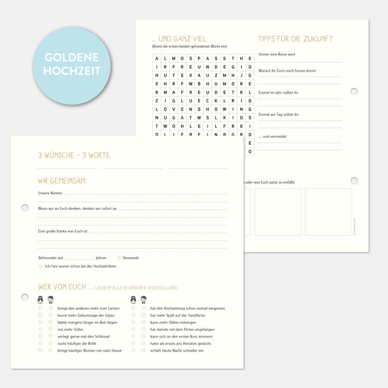 Eine tolles Erinnerungsalbum für die Goldene Hochzeit. Dank der Fragenseiten können die Gäste ohne langes Überlegen sofort mit dem Schreiben loslegen.
