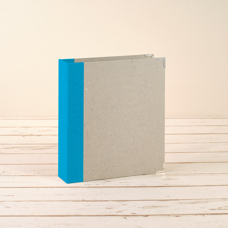 ohne Inhalt | frz. Buchbinderpappe mit Leinenstoff halbbezogen | 20,5 x 23 x 5 cm (BxHxT) | A5 | Füllhöhe: 25 mm | Füllmenge: ca. 100 Blatt (160 g Naturpapier) oder 130 Blatt (100 g Papier) | 2er Lochung | Buchecken | Niederhalter aus Metall | ohne Kunststoff/Plastik
