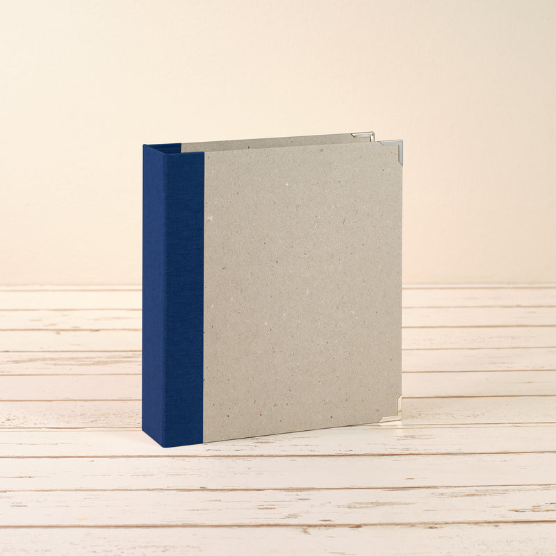 ohne Inhalt | frz. Buchbinderpappe mit Leinenstoff halbbezogen | 20,5 x 23 x 5 cm (BxHxT) | A5 | Füllhöhe: 25 mm | Füllmenge: ca. 100 Blatt (160 g Naturpapier) oder 130 Blatt (100 g Papier) | 2er Lochung | Buchecken | Niederhalter aus Metall | ohne Kunststoff/Plastik