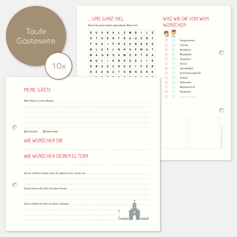 10 extra Gästebögen für das Taufalbum. 20 Bögen sind in einem Set bereits enthalten.