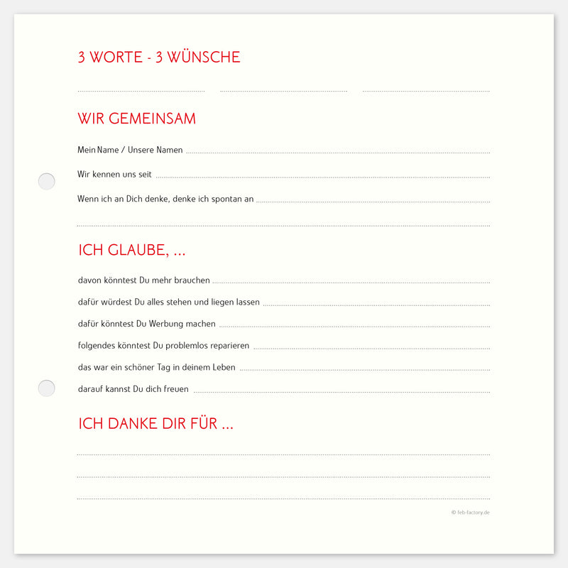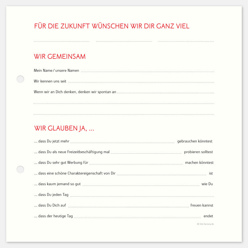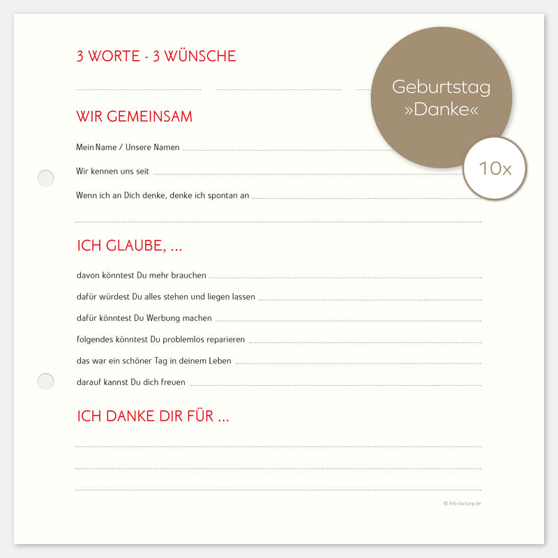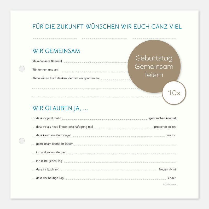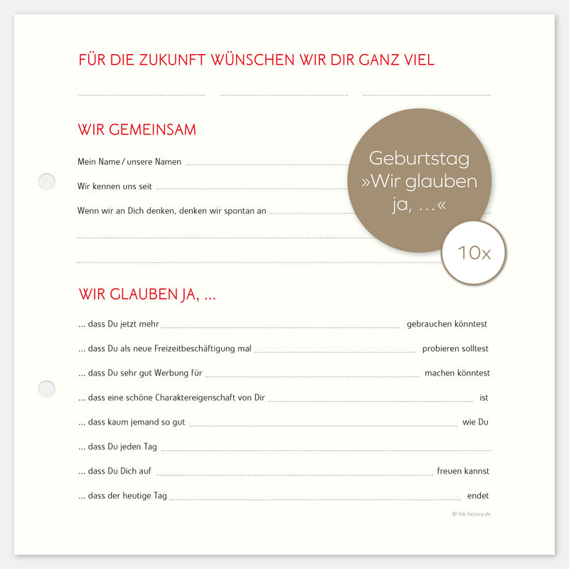 10 Extrabögen für das Geburtstags-Gästealbum mit Fragen. 30 Bögen sind in einem Set bereits enthalten. Passend zu #1, #2 oder dem Album »Gemeinsam Feiern«